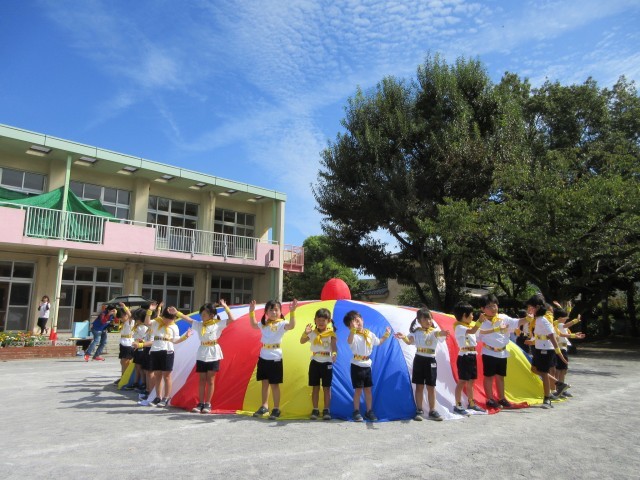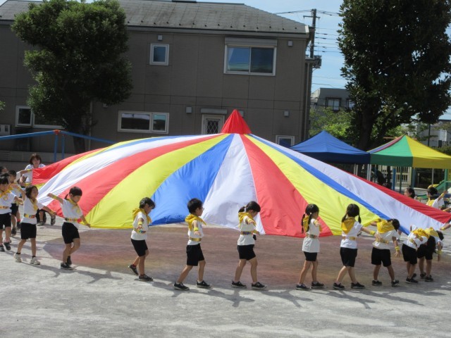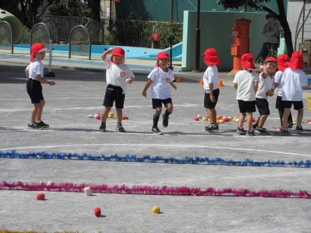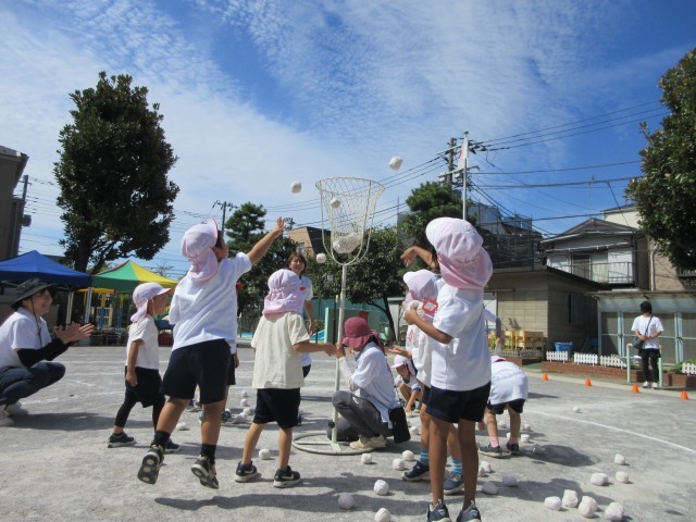 ばら組は玉投げも玉入れも頑張りました。♪ハンズアップに合わせて、バルーンの技も上手になってきました。
