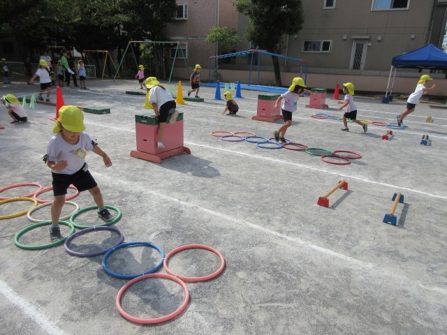 年長組がチャレンジをしていると、ばら組の子どもたちが「園長先生、がんばれー!って言っていいの?」と聞いてきました。