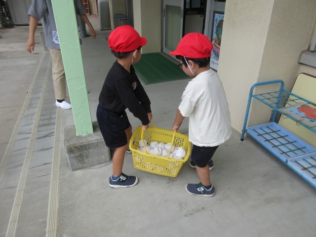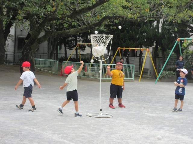ばら組は好きな遊びの中でも繰り返し玉入れを楽しんでいます。たくさん入るようになるととてもうれしいようです。