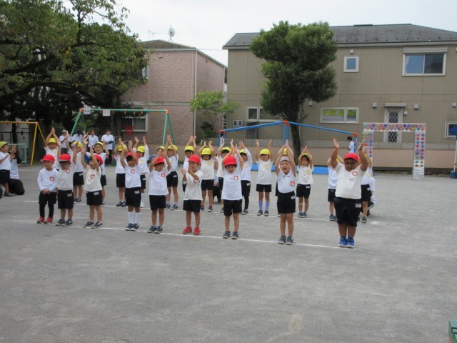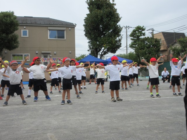 雨天のため延期した第59回運動会を本日実施しました。たくさんのお客様が見守ってくださる中、開会式や準備体操をしました。