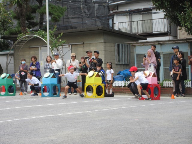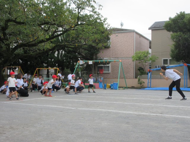 かけっこは、ヨーイピー!の合図を聞いて、力いっぱい走りました。