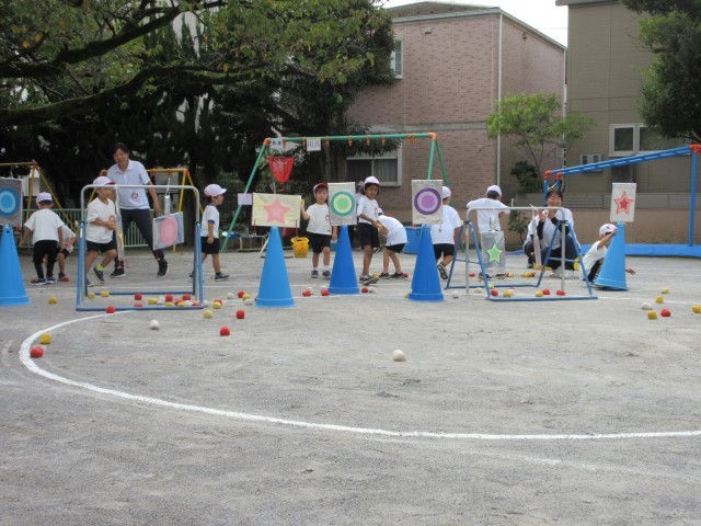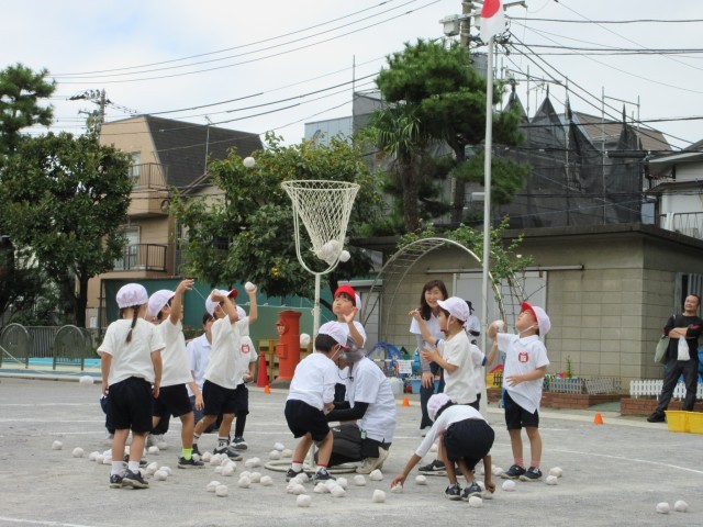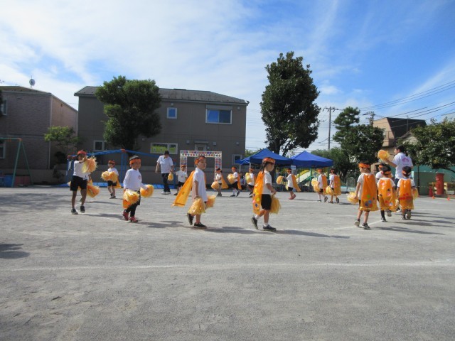 ばら組はキラキラのポンポンとマント、冠を身に着け♪ぱーらんぱ・グーの曲に合わせて楽しく踊りました。