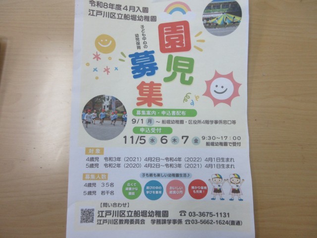 募集要項を配布しておりますので、ご希望の方は園までお越しください。