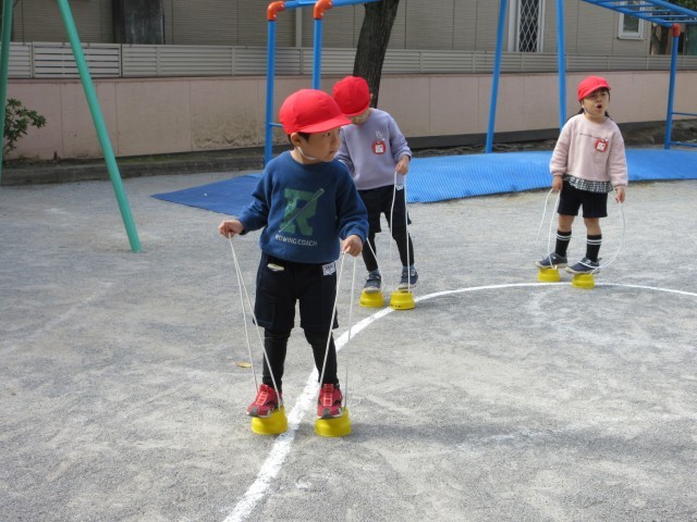 ばら組は運動会の時にもらったポックリで遊んでいます。