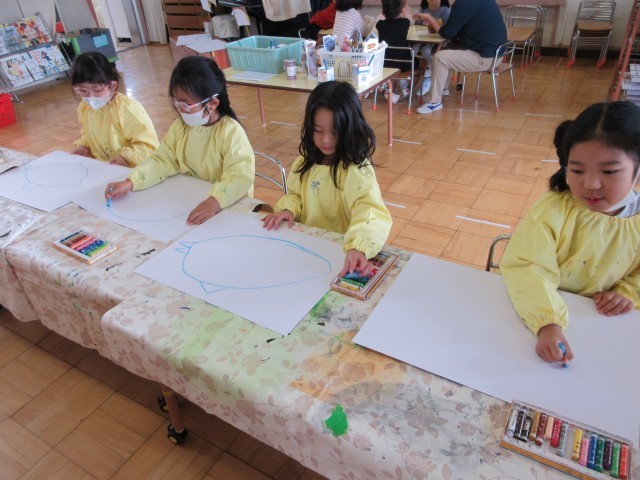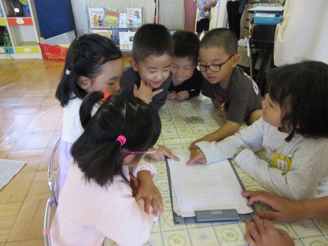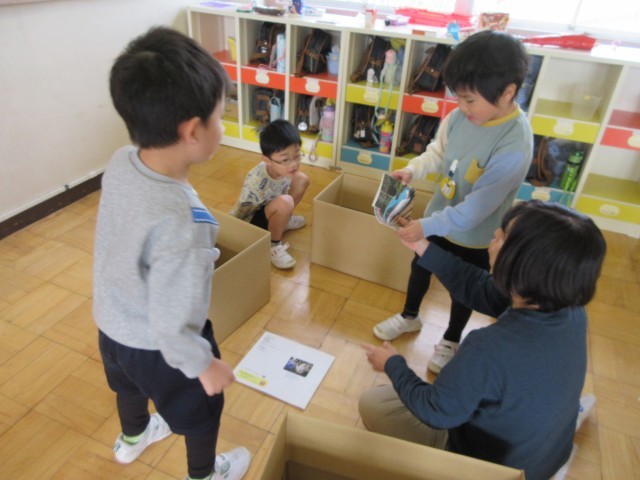 星の組は12月の生活発表会にむけて準備が始まりました。グループの仲間と「どんなことをしようかな」「何を作ろう?」と相談しています。