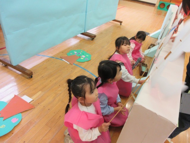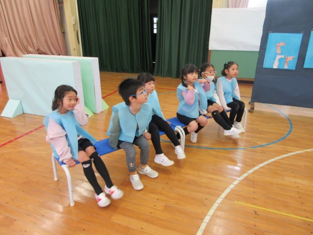 星の組は生活発表会の練習をグループでしています。今日はホールで練習。