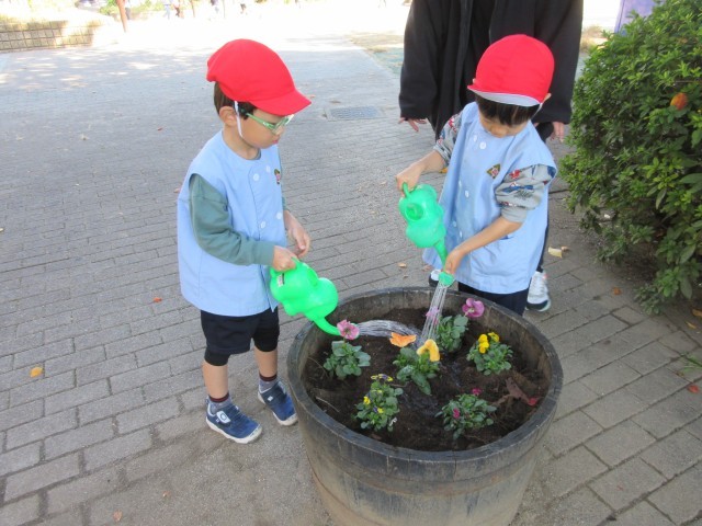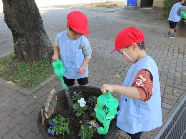 ばら組は宇喜田さくら公園に行き、花うえボランティアをしてきました。プランターにパンジーやビオラを植え、お水をあげました。
