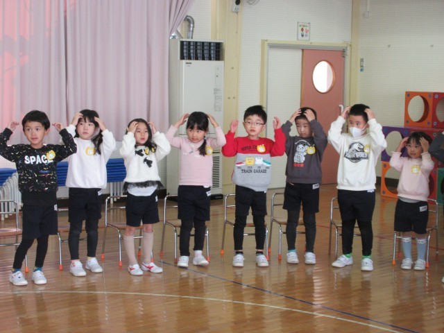 星の組は英語で遊ぼうに参加しました。オウス先生と♪Head Shoulders の歌を歌ったり、カードゲームをしたりしました。