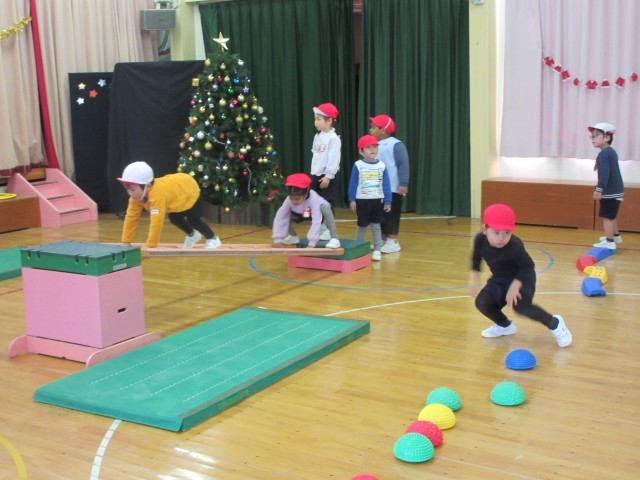 サーキット遊びや玉を使ったチームでの遊びに取り組みました。