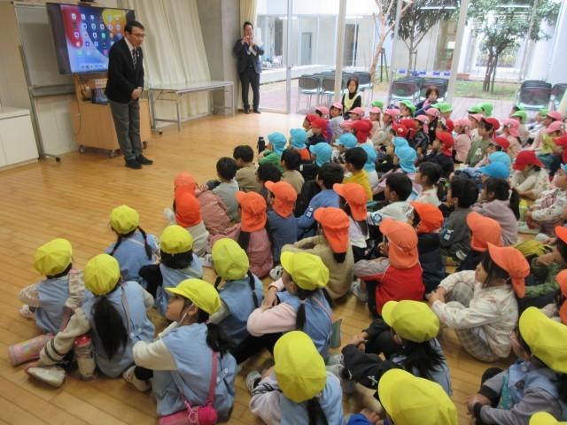 星の組は船堀小学校に行き、交流会をしました。初めは山下校長先生のお話や栄養士さん、すくすくスクールの先生のお話を聞きました。