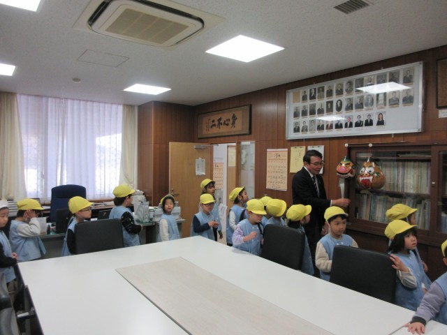 図書室を見たり、校長室に入れてもらいました。授業中の学校内をとても静かに歩いていました。