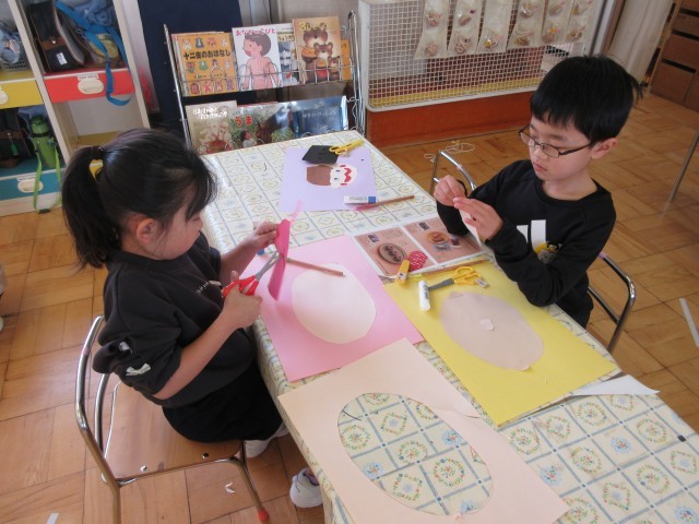 星の組 貼り絵で自分の顔作り
