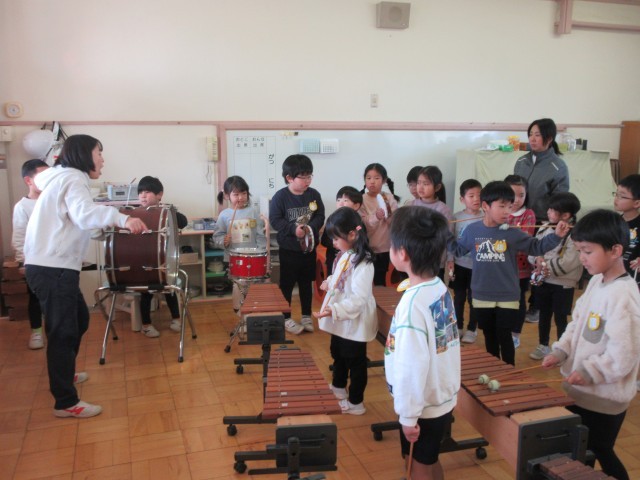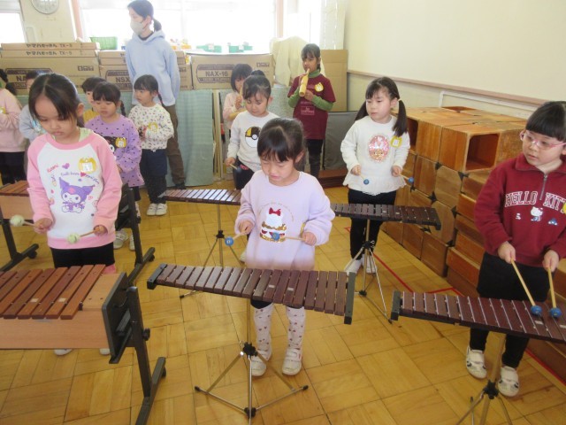 星の組はいろいろな楽器を交代しながら練習しています。学級の友達と一緒に楽しみながらも、頑張って取り組んでいます。