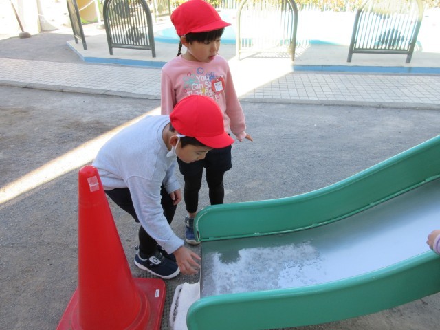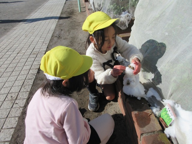 子どもたちはみんな大喜びで触ったり、小さな雪だるまを作ったりして遊びました。