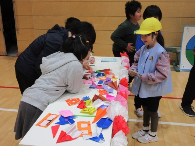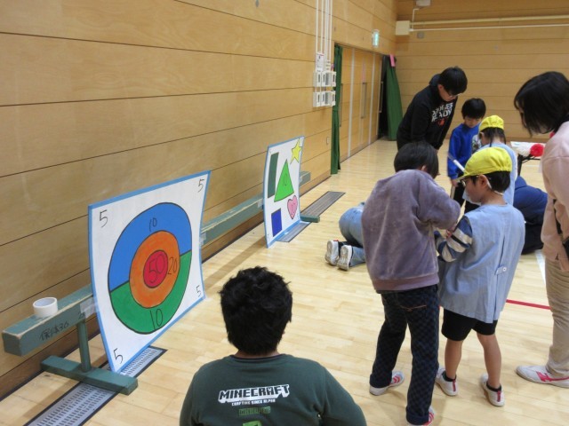 星の組は船堀小学校に行きました。あすなろ学級の子どもたちが、幼稚園の子どもたちのために「ジャイロ飛ばしゲーム」「空気鉄砲ゲーム」で遊ぶ企画をしてくれました。