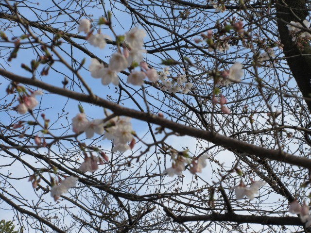 今日はいいお天気でしたね。園庭のサクラがようやく咲き始めました。