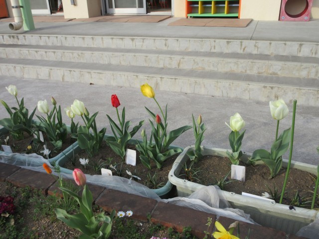ばら組が植えたチューリップや水仙もきれいに咲いています。