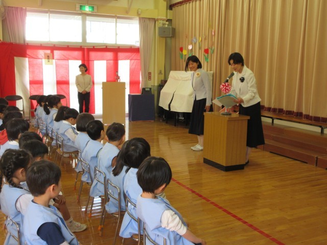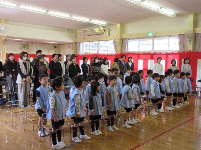 一学期始業式をしました。ピカピカの名札を付けた星の組さん、みんな元気に出席しました。