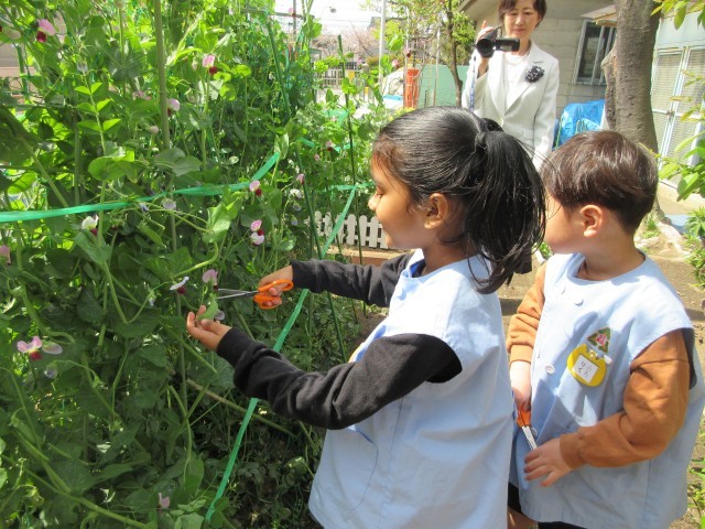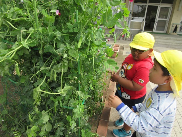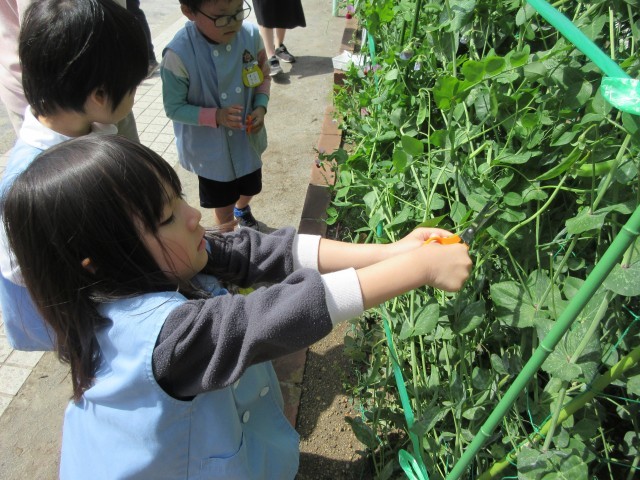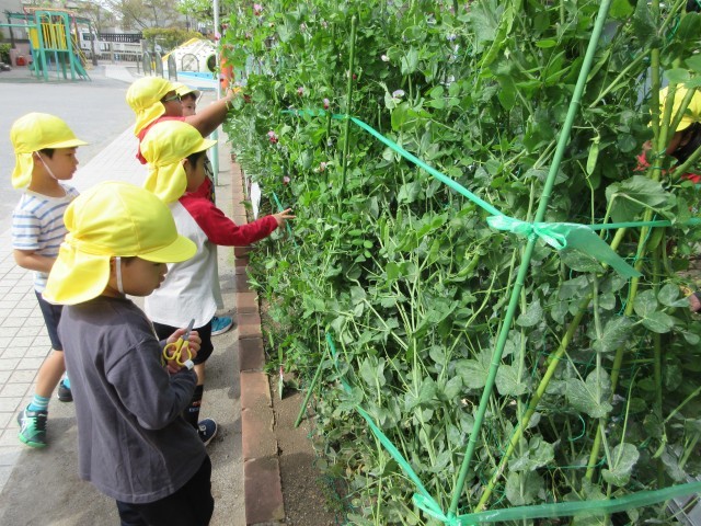 星の組が年少組の時から育てていたキヌサヤ。みんなでキヌサヤをたくさん収穫しました。