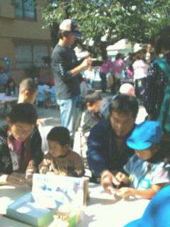 その他に修了児保護者のどろだんごの会の皆さんはフルーツポンチ屋さんをやってくださいました。小学生もマイクやチラシを使って宣伝に協力していました。また、割り箸鉄砲を作っての的あて、先生方のフランクフルトやさんも人気でした。祭りの最後はどろだんごコンテストもあり、園長賞会長賞の贈呈で最後締めくくりました。