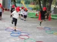 花やしき遠足の時の乗り物チームが決めた年長組。相談して決めたり、一緒に行動する活動として「オリエンテーリング」をしました。園歌を歌う、言葉集めやパズル、グループジャンケンなど5箇所のポイントを回りました。当日も楽しく乗り物に乗れますように。