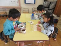 今日は星の組の劇をさくら組に見てもらいました。鬼が戦う場面では「鬼に負けるな」「がんばれ」と声援していました。劇が終わると星の組は「緊張した〜」とほっとしていました。
