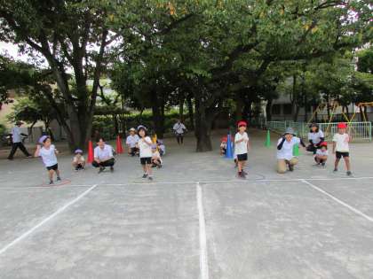 予行といっても、子どもたちにとっては一回目の運動会という感じだったと思います。年長組は年少組のダンスなどを応援していました。